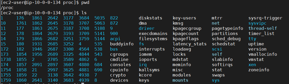 /proc 디렉토리 : 가상파일시스템 (리눅스의 커널과 사용자 영역사이에 일어나는 통신 채널)