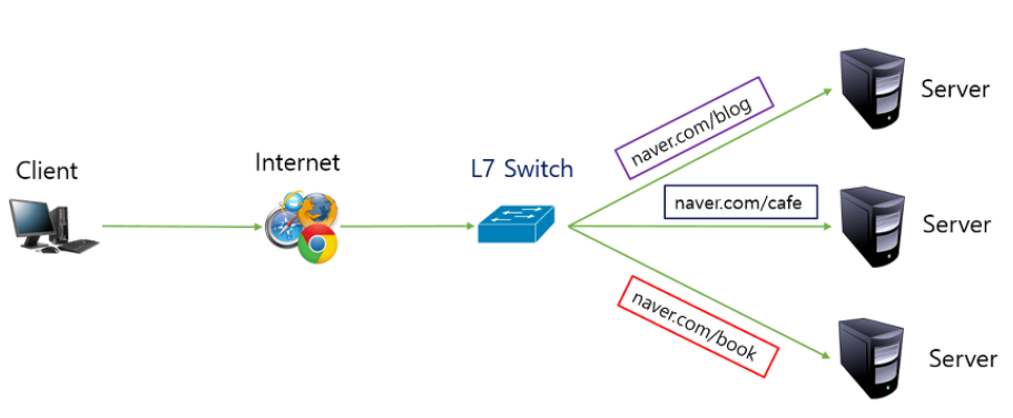 L7 : IP주소+포트번호 + 패킷내용 을 보고 스위칭