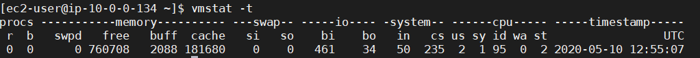 3. 시간까지 표시해서 출력 : vmstat -t