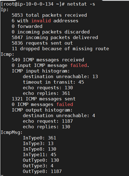 ip 프로토콜, ICMP 프로토콜, TCP/UDP 프로토콜별 통계정보 출력