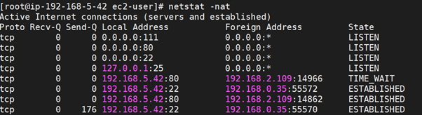 4. TCP 프로토콜의 네트워크 연결상태확인 : netstat -nat