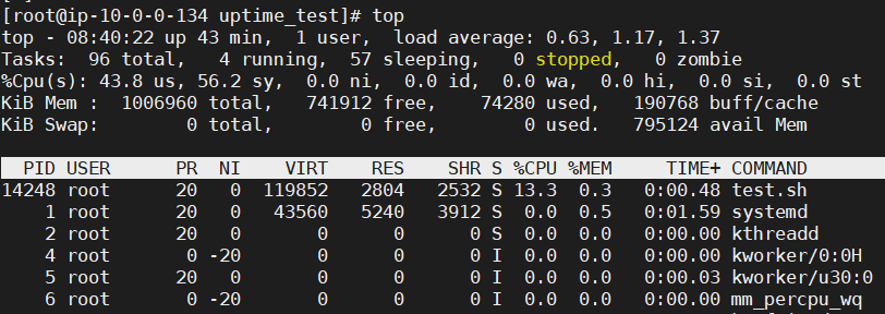 yes command에 cpu가 99%가 되도록 테스트 : yes >/dev/null