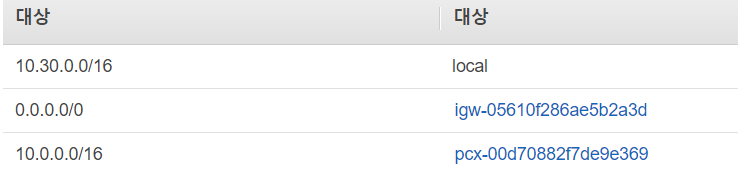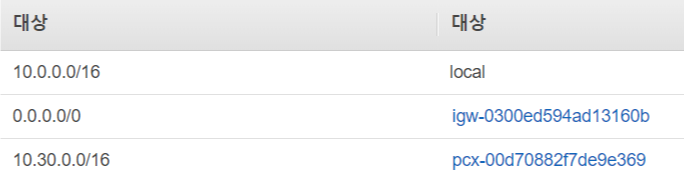 요청자VPC(local : 10.0.0.0/16)에 10.30.0.0/16 추가
