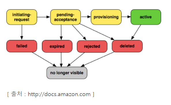 - expired : pending-acceptance 이후 VPC피어링 연결요청 만료상태(2일 동안 상태기록)