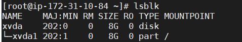 디스크 하나의 분할 단위를 하나의 파티션으로 가지고 있음 (dev/xvda1)