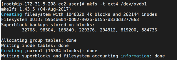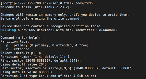 Attach한 디스크에서 생성한 파티션 : dev/xvdb1