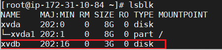 마운트 포인트 디렉토리 생성 : mkdir /xvdb