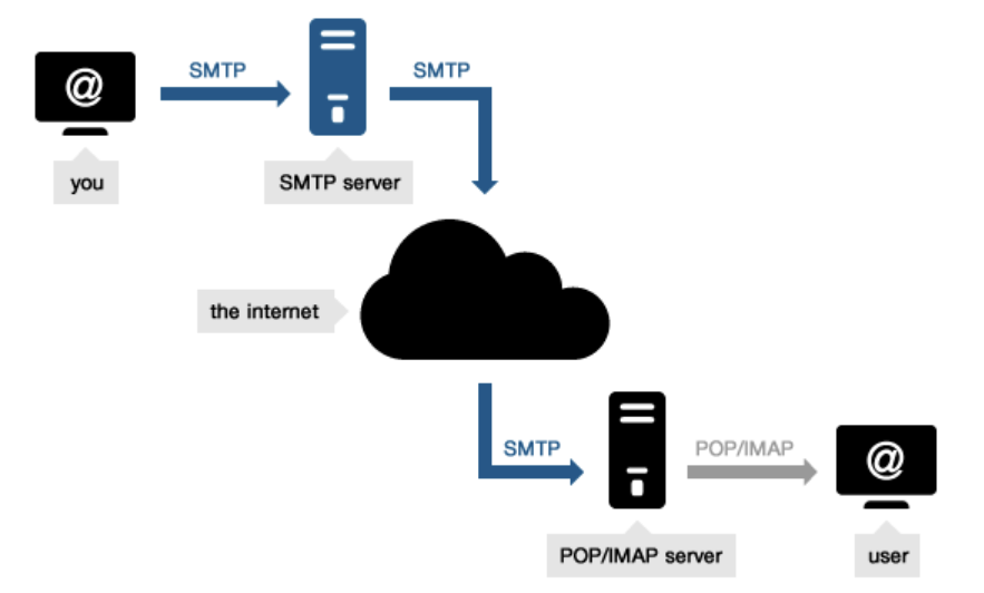 그러면 우체국처럼 SMTP서버가 가지고 있다가, 받을 사람의 서버인 POP서버나 IMAP서버로 전송한다.