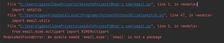 그 이유는 구글링에서 알게 되었는데, 내 파이썬 파일명이 email이였던 것이다.