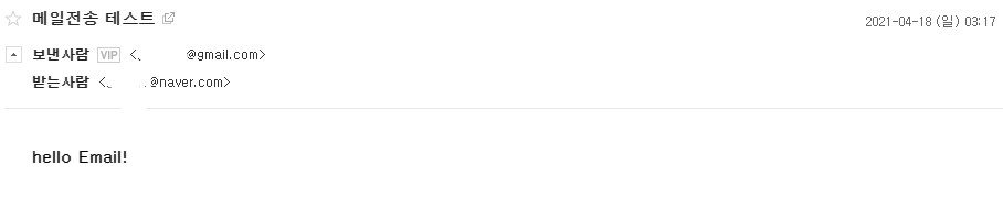나의 경우는 구글메일이 sender, 네이버메일을 receiver로 설정했다.