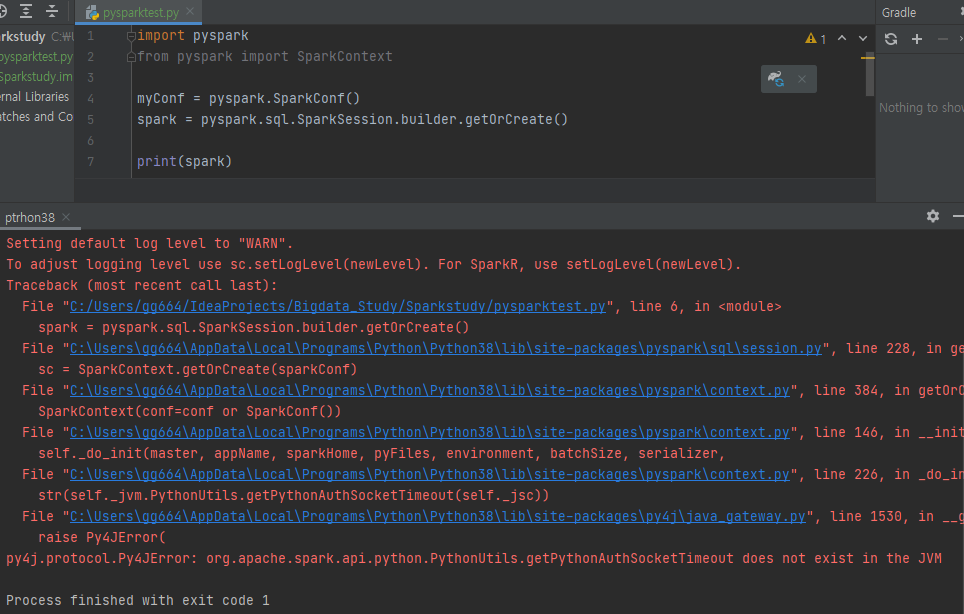 간단하게 python에서 pip으로 설치하면 바로 spark를 쓸 수 있다고 생각했다.
