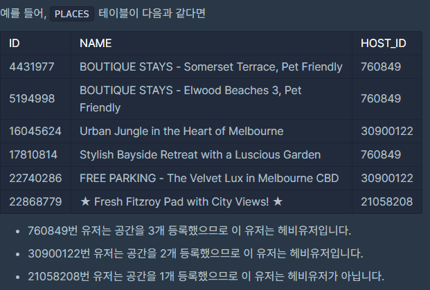 그 host id 에 해당하는 내용을 select하면 되니까 서브쿼리를 적용했다.