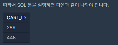 CART-ID를 뽑는데, 조건으로 CART_ID를 찾는 것이다.