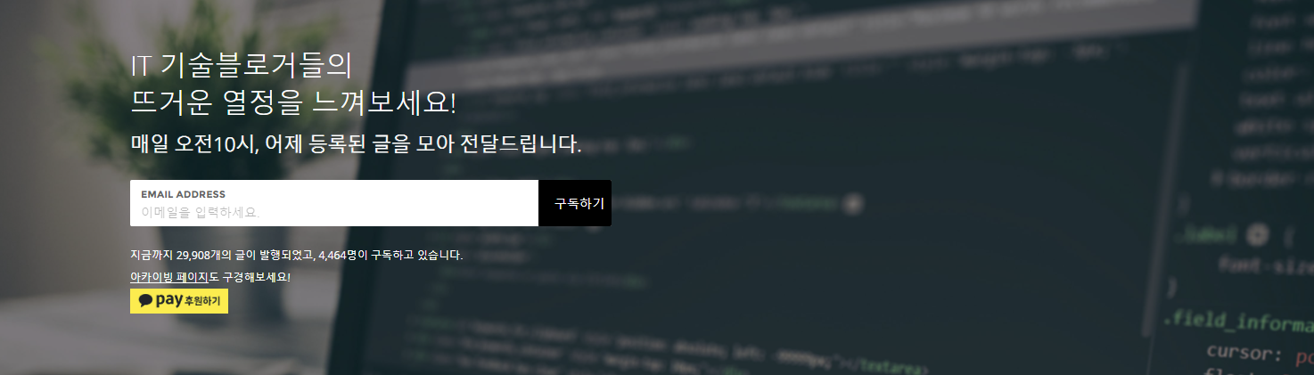 나의 레퍼런스 기술블로그 구독서비스의 구독신청 웹페이지이다.