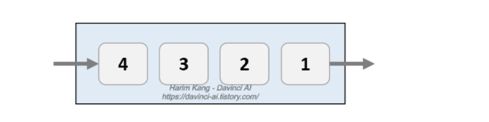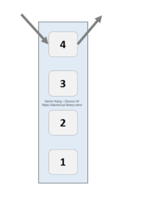 먼저 넣은 데이터를 가장 나중에 꺼내는 데이터 구조. LIFO(Last-in, First-Out)방식