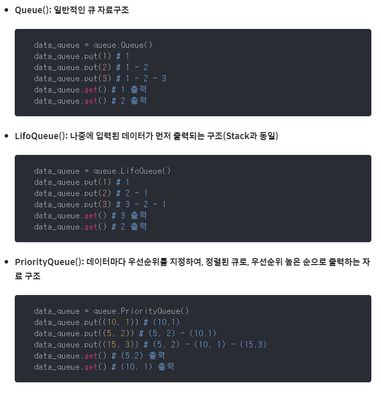 Dequeue : 큐에서 데이터 꺼내기, python list의 pop()과 같음