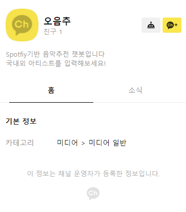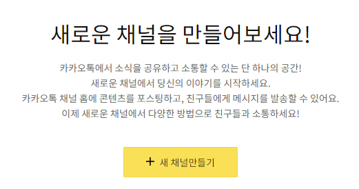 마지막으로 이렇게 기획한 챗봇을 카카오톡에서 사용하기 위한 채널이 필요하다.