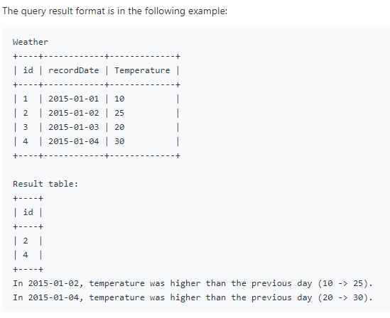 어제의 보다 기온이 높은 날의 ID를 구하라