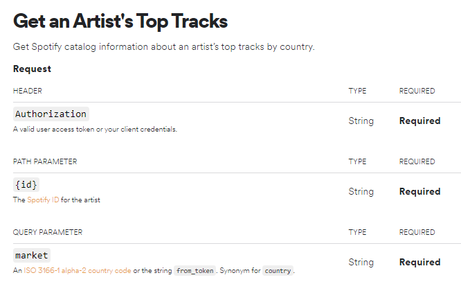 >> API 레퍼런스 https://developer.spotify.com/documentation/web-api/reference/#endpoint-search