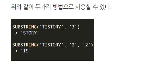 또는 SUBSTR(문자열,시작위치)