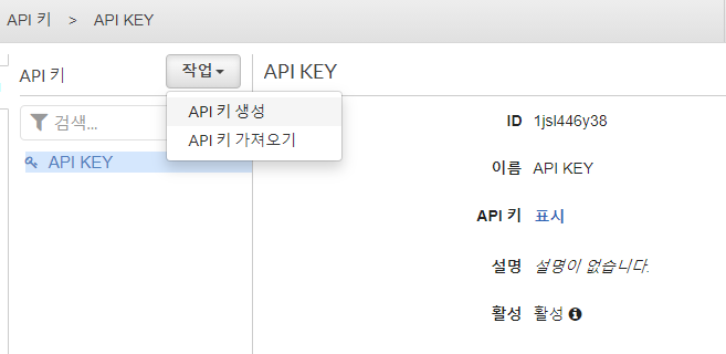 - api key생성 : '메소드요청'에서 API 키 필요 true로 변경 -> API KEY 생성