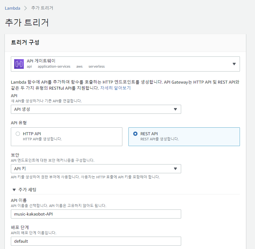 그래서 만약에 나처럼 바로 람다를 생성하면서 API게이트웨이로 트리거를 추가하는 경우