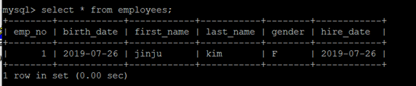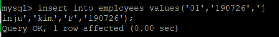 복제를 수행할 employees데이터베이스의 employees테이블에 데이터를 insert합니다.