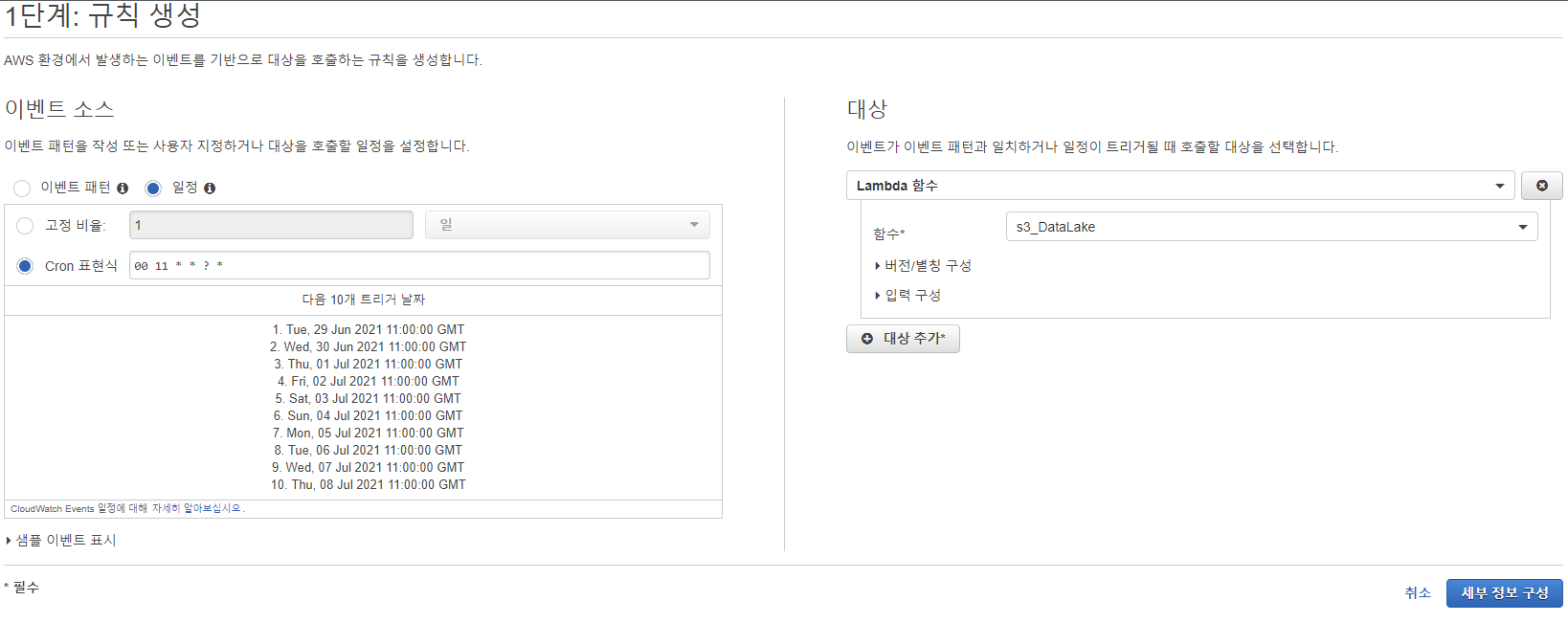 참고로 AWS안에서 시간을 걸때는 다 UTC기준이니까 그걸 고려해야한다. >> UTC TO KST