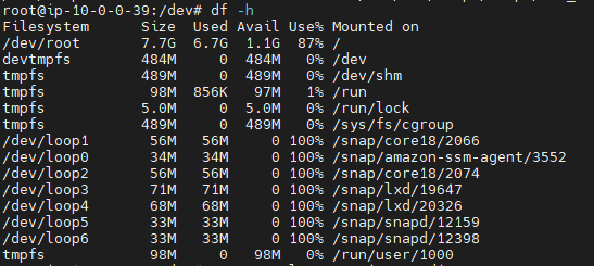 원인 : 실제로 거의 디스크용량이 다 차고 있었다.