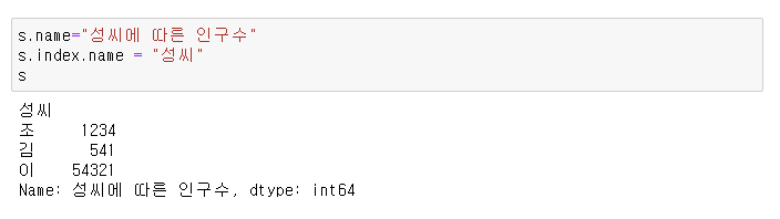 2 ) Series의 이름과 index에 이름을 지정해 줄 수 있다