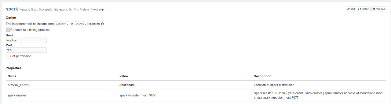 인터프리터 설정에서 경로를 spark 서버주소로 변경해줘야하는데,