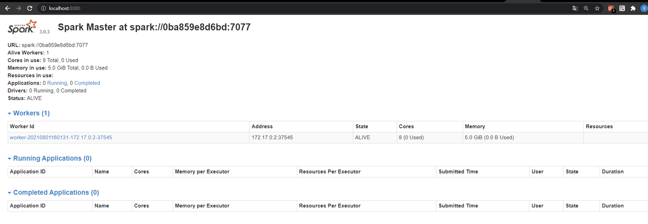 연결을 확인해봤는데, spark는 내부ip(172.17.0.2)를 가진다.흠