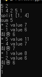 - 그리고 초기화 sum값을 처음 x까지 split한 sum값으로 지정한다.
