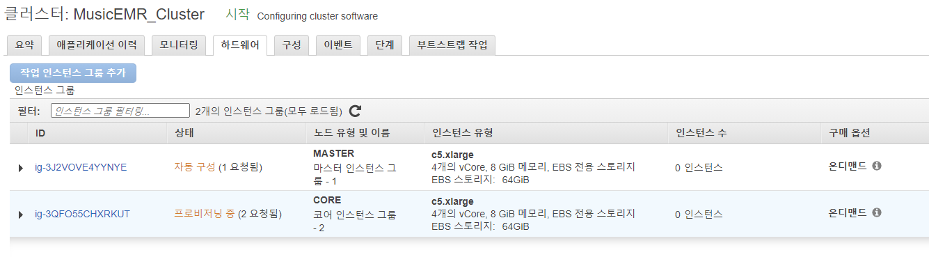 2021.08.07 - 음악추천챗봇9. AWS EMR 클러스터구축(Hadoop+Spark+Zeppelin)