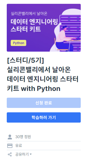 사실 이 데이터엔지니어 스터디를 알게 되었을땐 이미 마감이 된 상태였다.