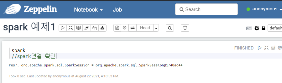 실습환경 : docker로 zeppline실행해서 SparkSession연결
