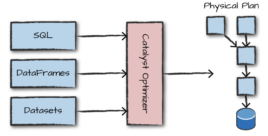 카탈리스트 옵티마이저 : 데이터프레임을 사용하면서 거의 다른 언어들끼리 동일한 성능을 낼 수 있도록 성능개선