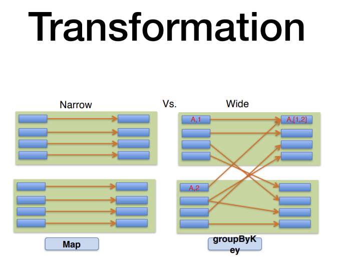 - wide Transformation: 키를 기반으로 sort , 네트워크io발생