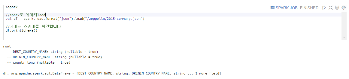 2. spark로 데이터로드 및 스키마확인 (base RDD)