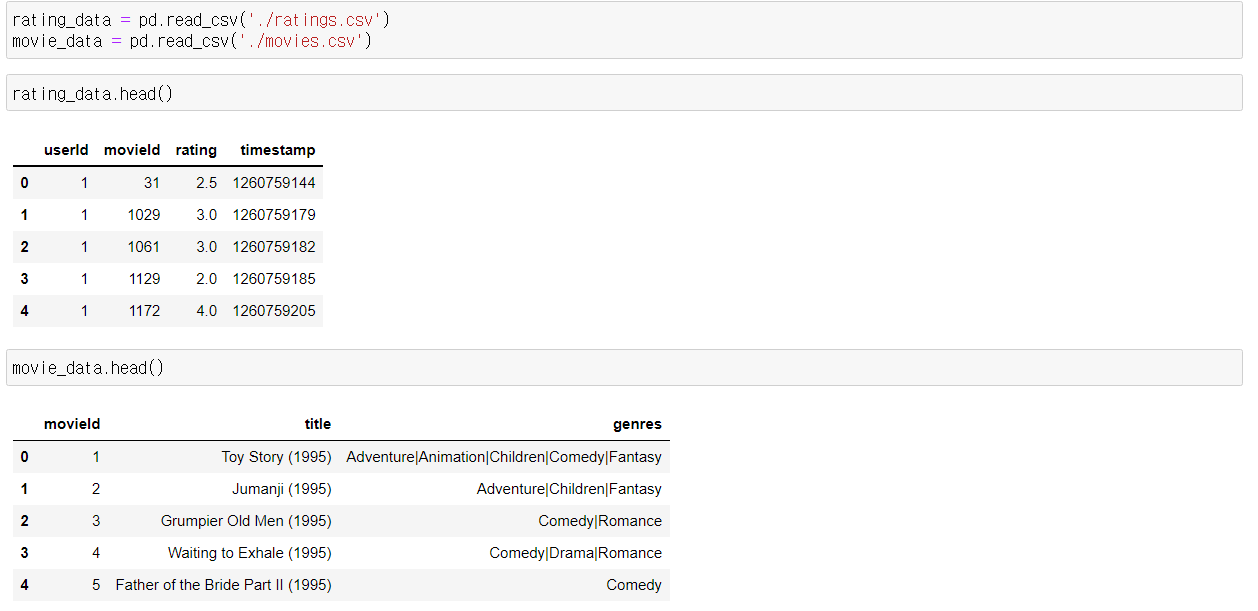 데이터셋 : https://www.kaggle.com/sengzhaotoo/movielens-small