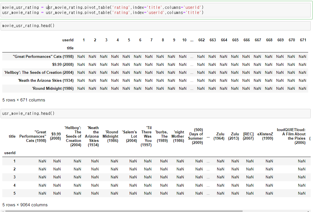 movie_usr_rating : 영화-사용자 피봇테이블 (index : 영화, column : 사용자)
