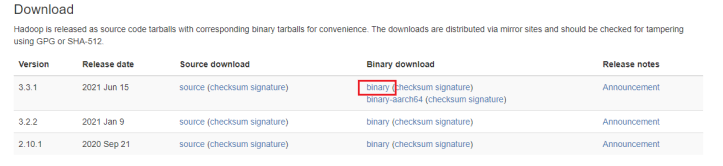 wget https://dlcdn.apache.org/hadoop/common/hadoop-3.3.1/hadoop-3.3.1.tar.gz