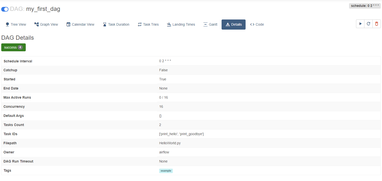 현재 예시 DAG는 매일 오전2시마다 스케쥴을 돈다.
