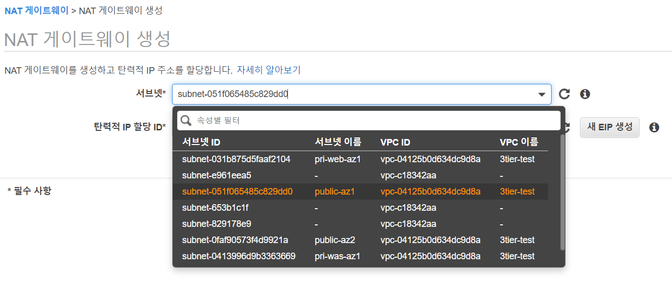 4. NAT게이트웨이 생성