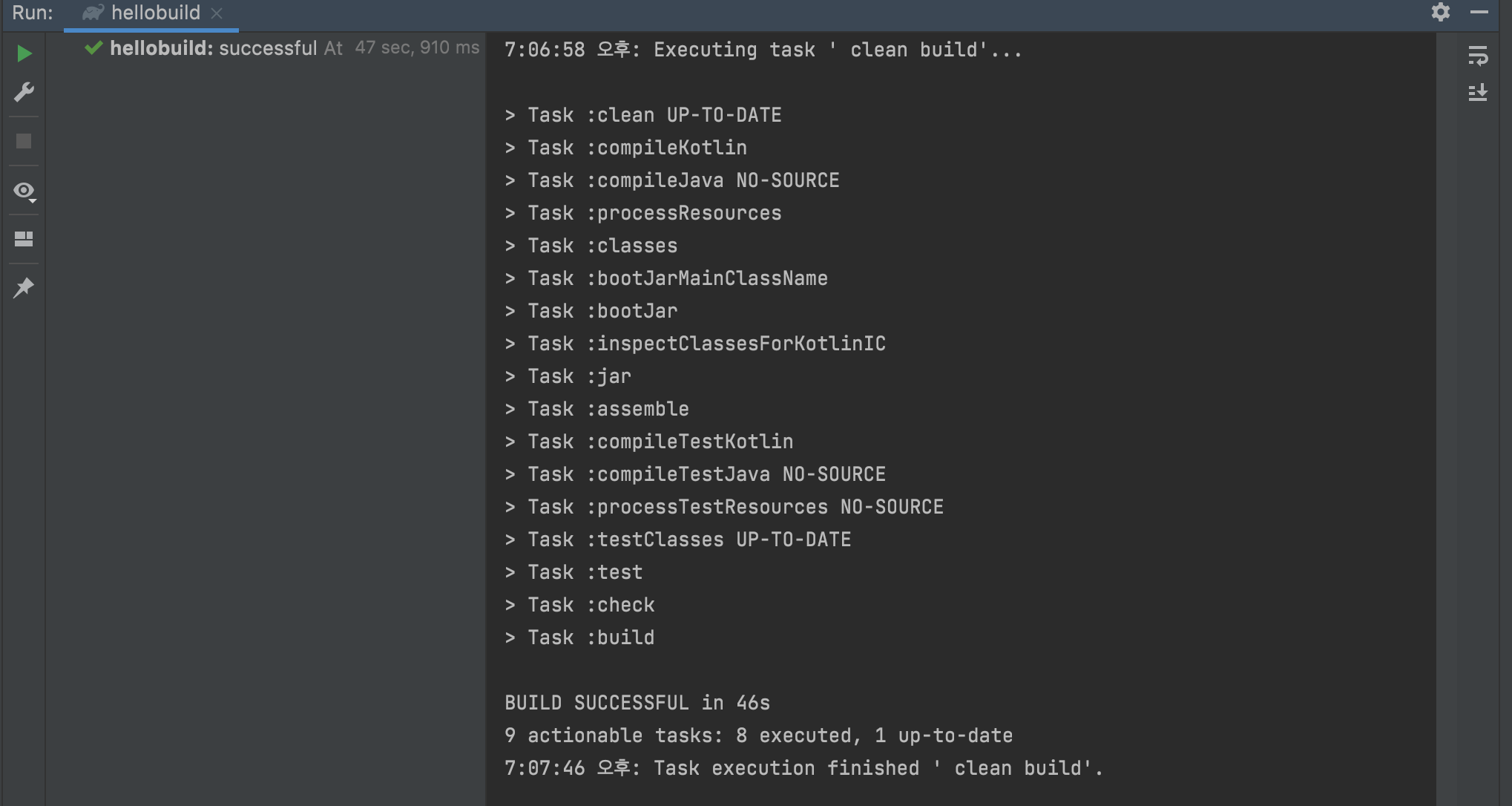 그러면 이렇게 task마다 어떻게 진행됐는지 찍히면서 빌드가 성공적으로 진행된걸 볼 수 있다.