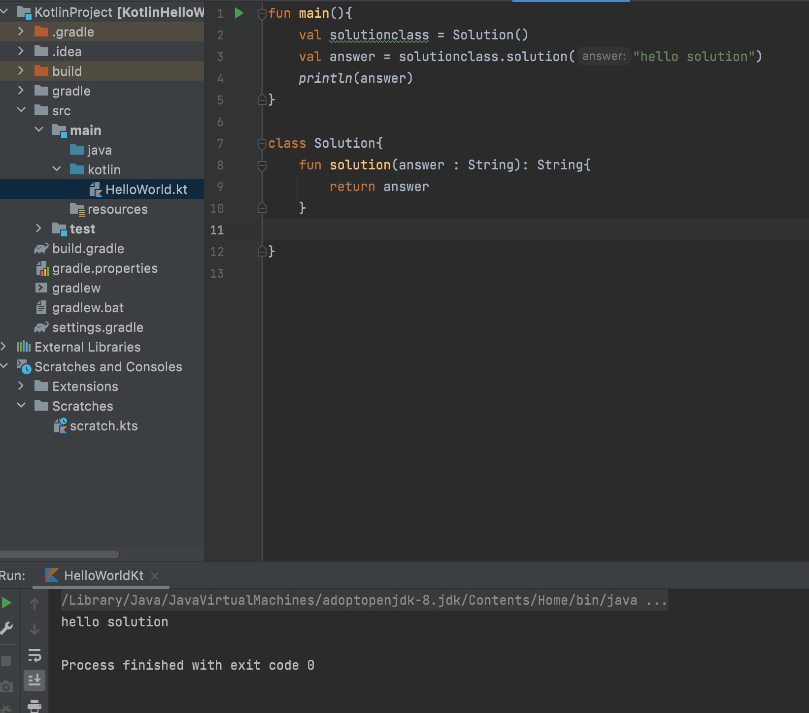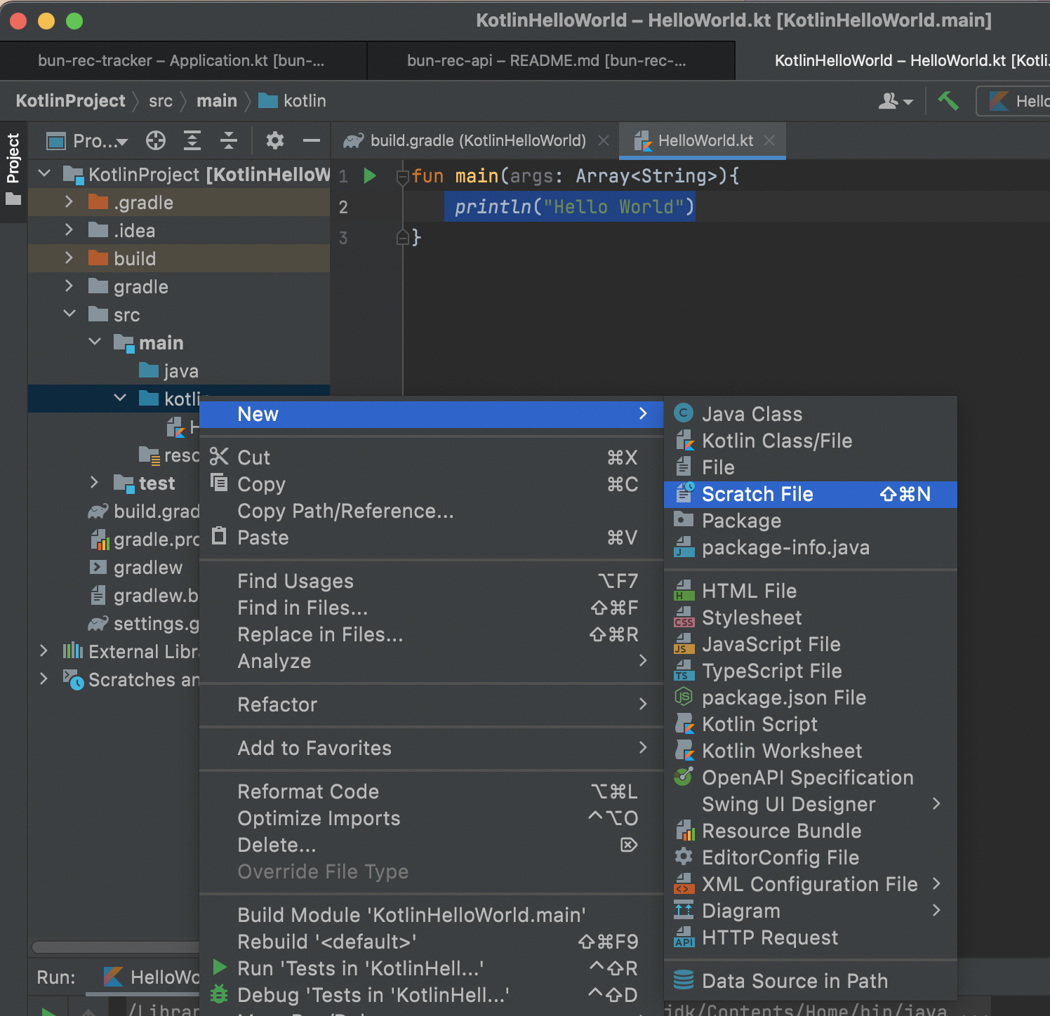일단 무작정 코틀린으로 클래스를 만들어서 hello world를 시작했다.