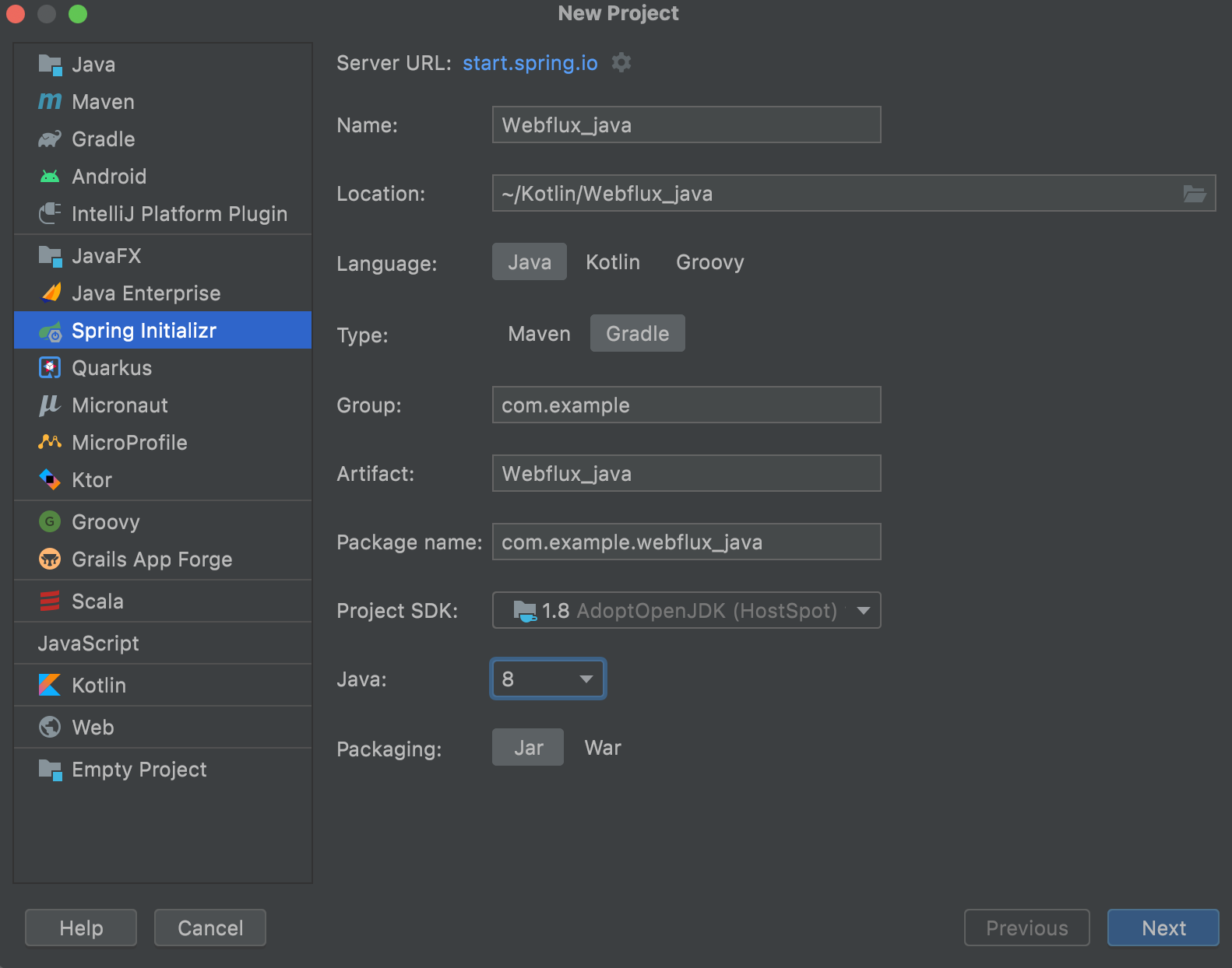 사실 나의 목표는 Intellj에서 gradle로 Kotiln기반 Spring webflux 프로젝트를 시작하는 것이다.