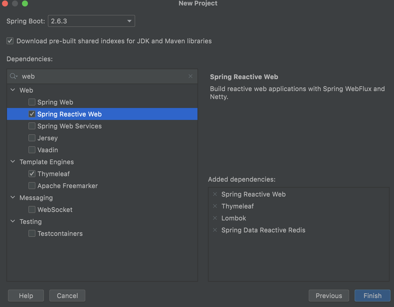- Reactive web : embedded Netty + Spring WebFlux가 있는 dependency