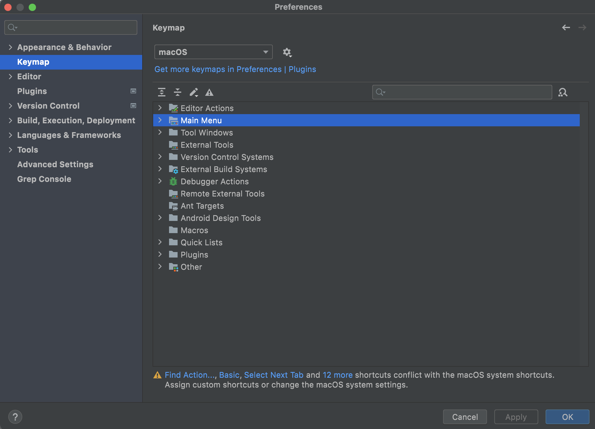 그리고 단축키는 내가 직접 커스텀할수도 있다. Keymap에서 지정할 수 있다.