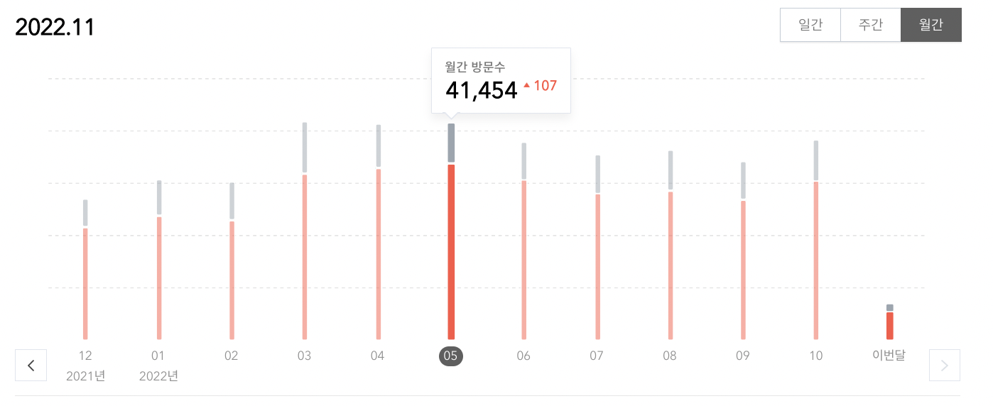 물론 블로그 성장의 지표를 월 방문자수로 단정짓기는 애매하지만..점점 비슷한월 평균 방문자수를 유지하거나 떨어졌다.